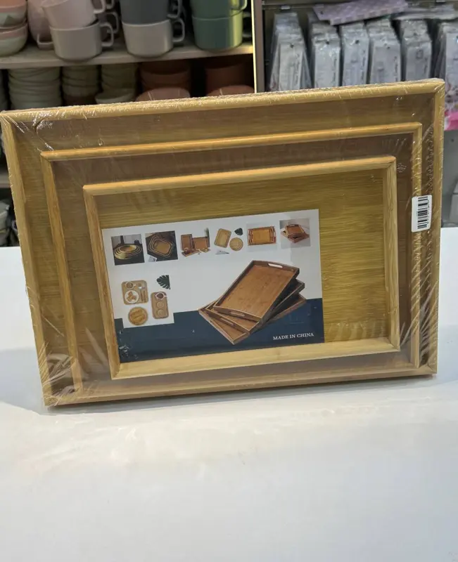 أضف لمسة دافئة وجميلة إلى منزلك مع هذا الطقم المميز من صواني التقديم الخشبية. يتكون الطقم من 3 قطع بمقاسات مختلفة، مما يجعله عمليًا جدًا لتقديم المشروبات أو الوجبات الخفيفة.