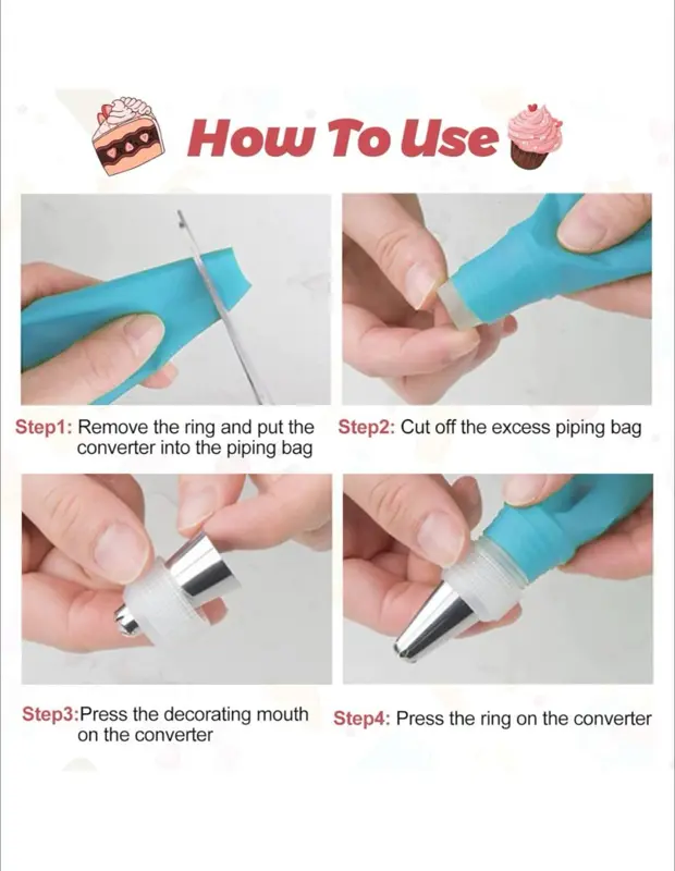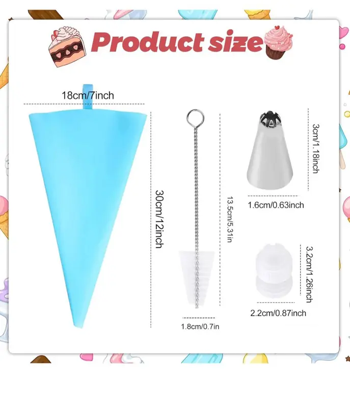 • كيس حلواني سيليكون: مزود بـ كيس حلواني من السيليكون عالي الجودة، وهو عملي وقابل لإعادة الاستخدام وسهل التنظيف.