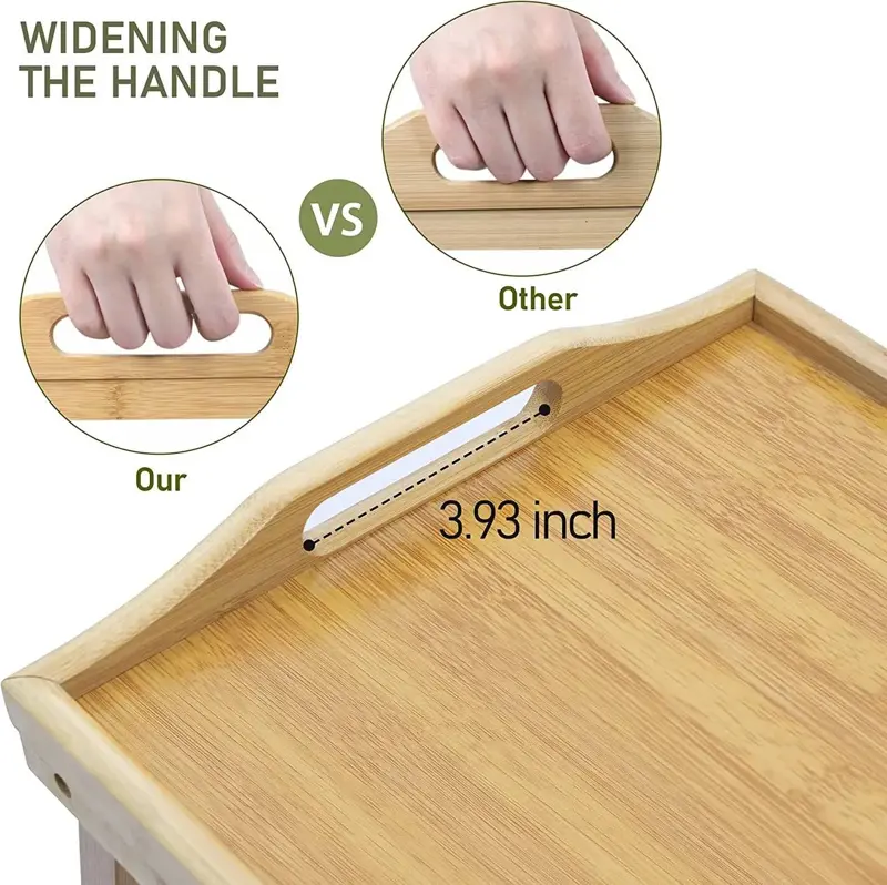 استمتع بوجبات الإفطار المريحة في السرير أو على الأريكة مع ترابيزة الإفطار المستوردة هذه، المصممة على طراز "ايكيا". تتميز الترابيزة بتصميمها الأنيق والمصنوع من الخشب، مما يمنحها مظهرًا طبيعيًا ودافئًا.