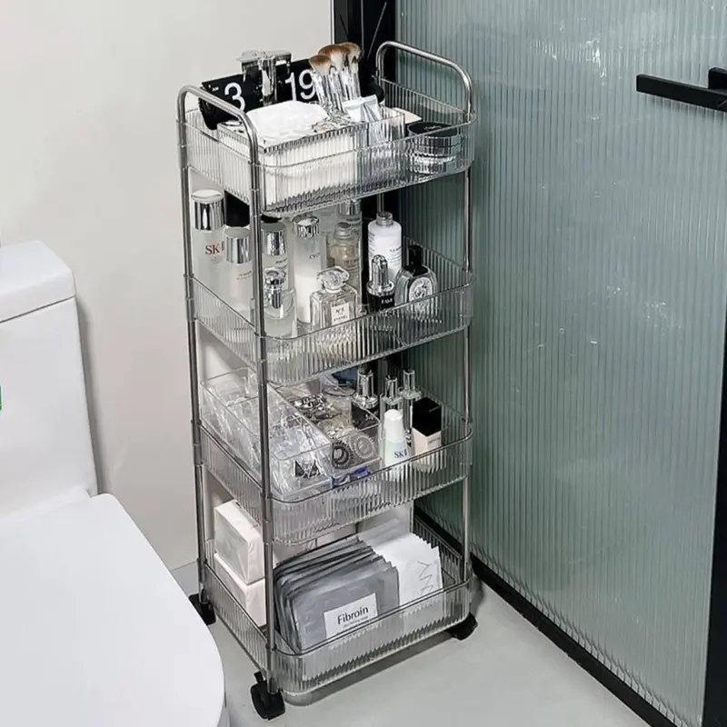 أناقة عصرية وتعدد لا مثيل له في الاستخدامات. نقدم لكِ هذا الترولي المنظم العملي والأنيق، وهو قطعة متعددة الاستخدامات تم تصميمها بعناية لتوفير حلول تخزين مرنة وفعالة في أي مكان بمنزلك. يتميز بتصميمه العصري الذي يجمع بين المعدن عالي الجودة والأكريليك الشفاف، مما يضفي لمسة من الفخامة والرقي، كما أنه مقاوم للصدأ، مما يضمن متانته وقدرته على تحمل الاستخدام في البيئات المختلفة. يمكن استخدام الترولي في الحمام كحامل لمنتجات الاستحمام، أو في الغرفة والمكتب لتنظيم الأغراض الشخصية، أو في المطبخ لترتيب الأدوات. الترولي متوفر بأربعة أدوار، مما يمنحك مساحة واسعة للتنظيم مع سهولة نقله بفضل عجلاته. إنه الخيار الأمثل للمسة من النظام والجمال في أي ركن.