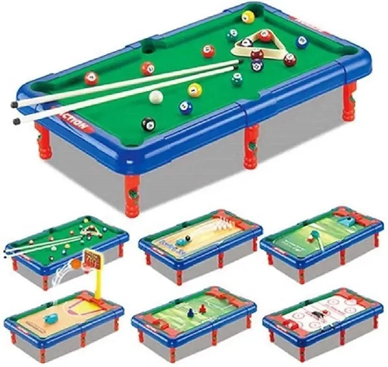 استمتعوا بـ 6 ألعاب مختلفة في مكان واحد! هذه الطاولة المبتكرة تُقدم مجموعة كاملة من الترفيه العائلي في تصميم مدمج. يمكنكم التبديل بسهولة بين لعبة كرة القدم المصغرة (فوسبال)، وكرة السلة، والبلياردو، وغيرها من الألعاب الحماسية التي تضمن لكم ساعات من المرح واللعب.