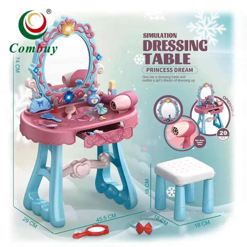 امنحوا طفلتكم مساحتها الخاصة للجمال والمرح مع طاولة التسريح الساحرة! بتصميمها الجميل والجذاب، توفر هذه الطاولة تجربة لعب متكاملة ومليئة بالخيال، حيث يمكن لطفلتكم التظاهر بوضع المكياج وتسريح شعرها، تماماً مثل الكبار.