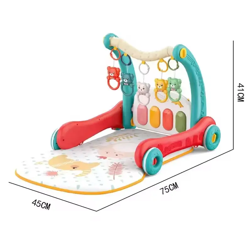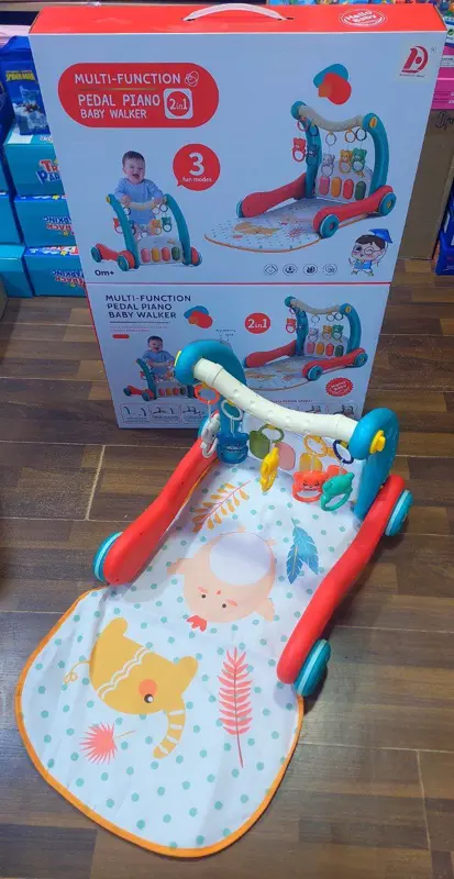 يأتي المنتج مع سجادة بيانو تفاعلية تصدر أصواتًا موسيقية عند لمسها بالأقدام، مما يشجع على الحركة والتفاعل. بالإضافة إلى ذلك، يضم مجموعة من الألعاب المعلقة الملونة التي تساعد على تنمية المهارات الحركية والتنسيق البصري.