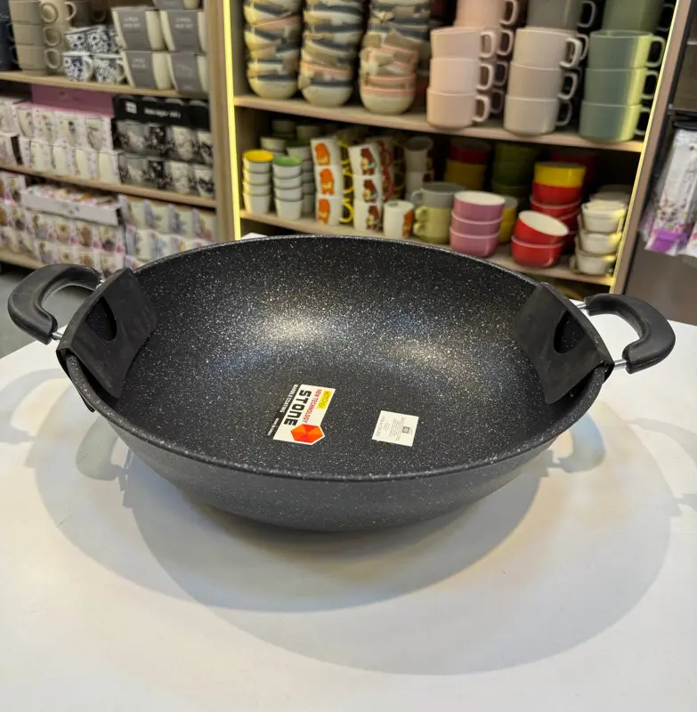اكتشفي سر الطهي السريع والشهي مع ووك الجرانيت المستورد! بفضل مقاسه الكبير (34 سم) وتصميمه العميق، يعد هذا الووك مثالياً لتحضير وجبات عائلية ضخمة والقلي العميق والتشويح الصحي. كما أن المقبضين يضمنان تحكماً سهلاً وآمناً.
