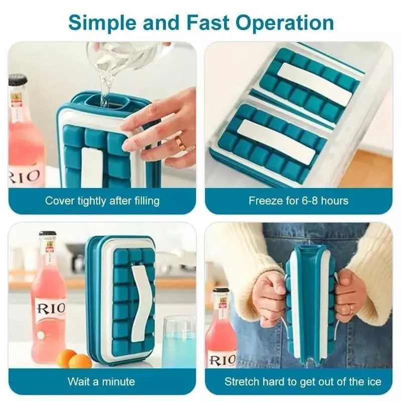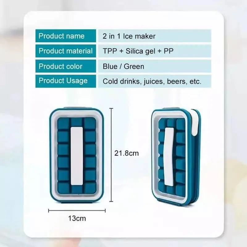• استخدام سهل: طريقة استخدامها مبتكرة وسهلة، حيث يتم ملؤها ثم وضعها في الفريزر، وبعد التجميد يتم فصل المكعبات مباشرة دون الحاجة لفتح القالب.