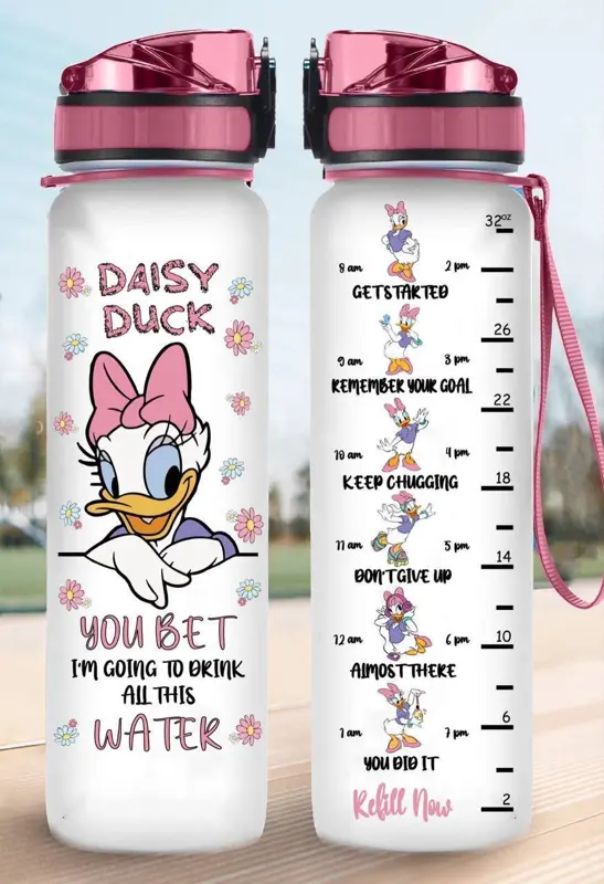 انعمي بالترطيب المثالي على مدار اليوم مع زجاجة المياه العملية والمصممة خصيصًا لكِ. تتميز بتصميمها المستوحى من شخصيات ديزني المحبوبة مثل ميني ماوس وستيتش وسالي، مما يضيف لمسة من البهجة والتحفيز إلى روتينك اليومي. صُممت هذه الزجاجة بسعة 1 لتر لتلبي احتياجاتك من الماء طوال اليوم، وتأتي مزودة بعلامات زمنية وعبارات تحفيزية تساعدك على تتبع كمية المياه التي تشربينها بشكل منتظم. بفضل تصميمها الأنيق والخفيف، يمكنكِ حملها بسهولة في حقيبتك أو أثناء ممارسة الرياضة، لتكوني على استعداد دائمًا لنسمة من الانتعاش.