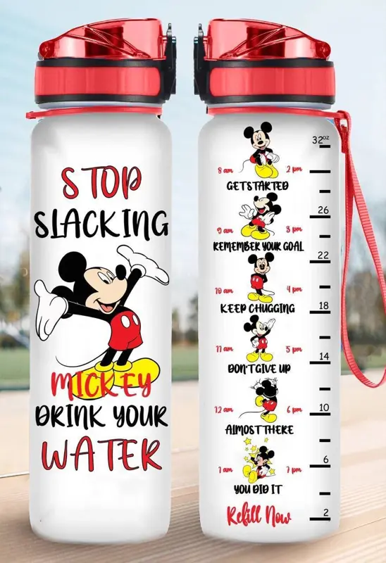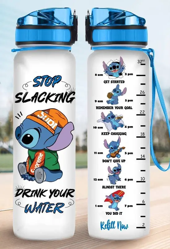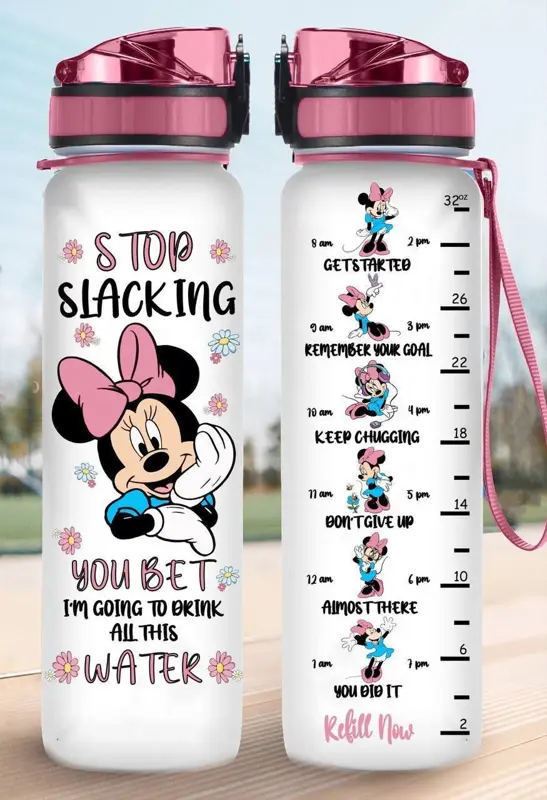 انعمي بالترطيب المثالي على مدار اليوم مع زجاجة المياه العملية والمصممة خصيصًا لكِ. تتميز بتصميمها المستوحى من شخصيات ديزني المحبوبة مثل ميني ماوس وستيتش وسالي، مما يضيف لمسة من البهجة والتحفيز إلى روتينك اليومي. صُممت هذه الزجاجة بسعة 1 لتر لتلبي احتياجاتك من الماء طوال اليوم، وتأتي مزودة بعلامات زمنية وعبارات تحفيزية تساعدك على تتبع كمية المياه التي تشربينها بشكل منتظم. بفضل تصميمها الأنيق والخفيف، يمكنكِ حملها بسهولة في حقيبتك أو أثناء ممارسة الرياضة، لتكوني على استعداد دائمًا لنسمة من الانتعاش.