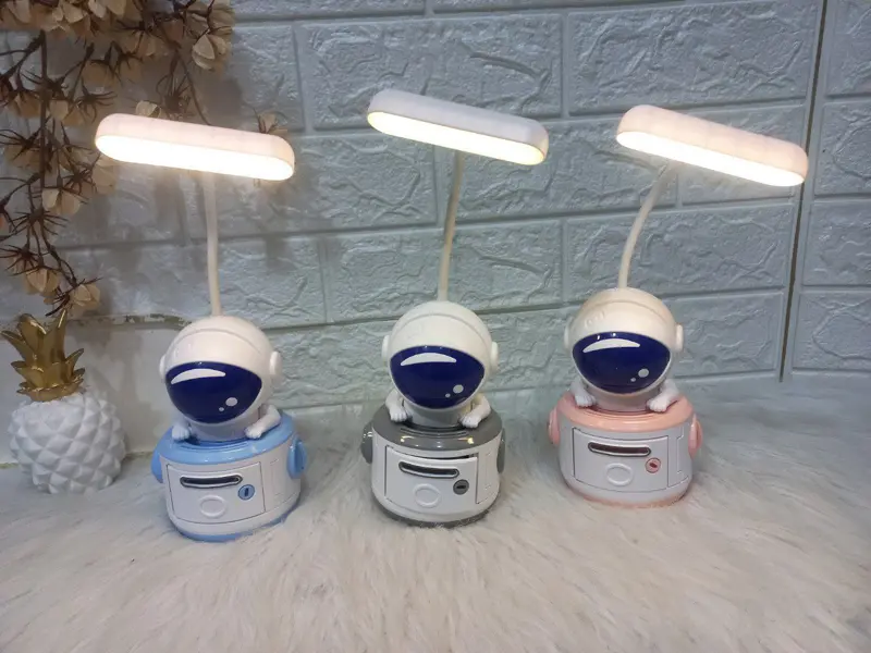 المنتج ليس مجرد أباجورة، بل هو أداة متعددة الوظائف. الجزء العلوي يعمل كغطاء لحافظة أقلام، بينما توجد في مقدمة الروبوت مبراة أقلام مدمجة لتبقى أدواتك جاهزة دائمًا. المصباح المضيء في القمة يوفر إضاءة لطيفة، مما يجعله مثاليًا كإضاءة ليلية أو مصباح تزييني.