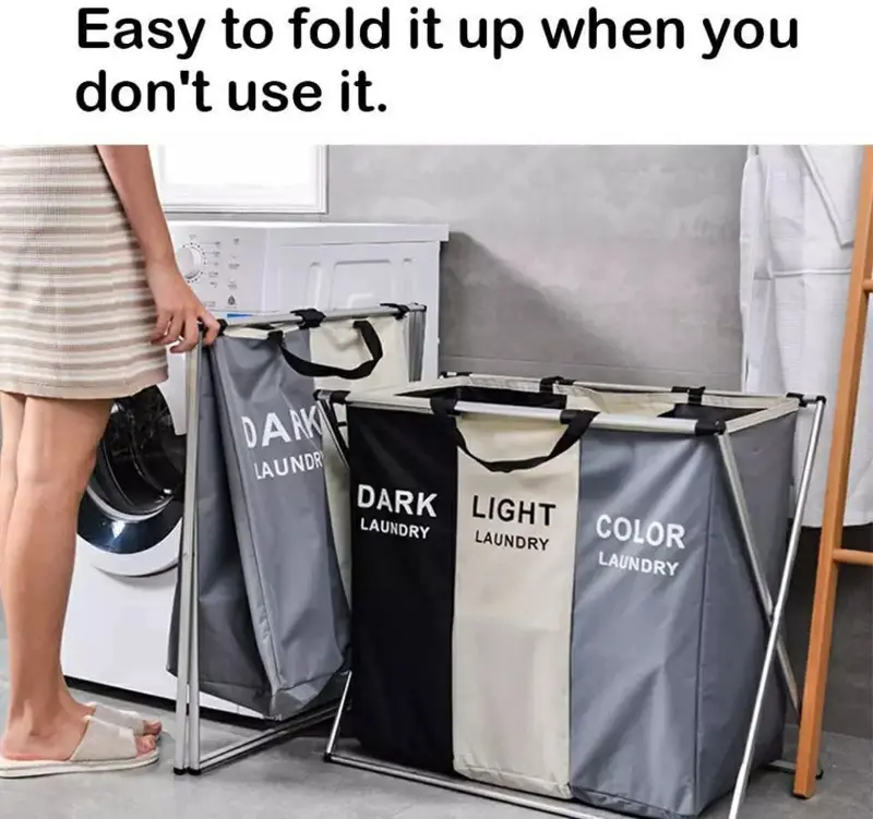 • استخدمي الأقسام الثلاثة لفرز الملابس حسب احتياجكِ (مثلًا: ملابس بيضاء، ملابس داكنة، وملابس ملونة).