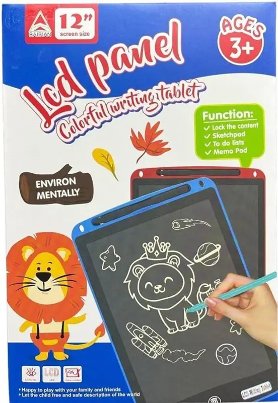 🔴عبارة عن شاشة لمس LCD ضد الكسر وهيكل بلاستيكي مرفقة بقلم الكتابة .