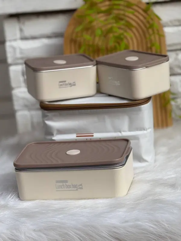 أناقة فائقة وتعدد لا مثيل له في الاستخدامات. نقدم لكِ هذا اللانش بوكس الحراري، وهو قطعة أنيقة ومتعددة الاستخدامات، تم تصميمه بعناية ليكون إضافة فاخرة لروتينك اليومي. يتميز بتصميمه العصري الذي يضفي لمسة من الأناقة، كما أنه مصنوع من الاستانلس ستيل الأصلي 304، مما يضمن متانته وقدرته على تحمل الاستخدام اليومي. يتجاوز وظيفة هذا اللانش بوكس مجرد حفظ الطعام، حيث يمكن استخدامه لتنظيم وجباتك بشكل جذاب، أو كقطعة مميزة تضيف لمسة جمالية إلى أي مكان يوضع فيه. إنه الخيار الأمثل لحمل وجباتك المميزة، حيث يضفي تصميمه لمسة من الشياكة والجمال. يتكون اللانش بوكس من علبة مستطيلة كبيرة وعلبتين مربعتين متوسطتين، لتناسب جميع الاحتياجات المختلفة، مما يمنحك المرونة في الاختيار.