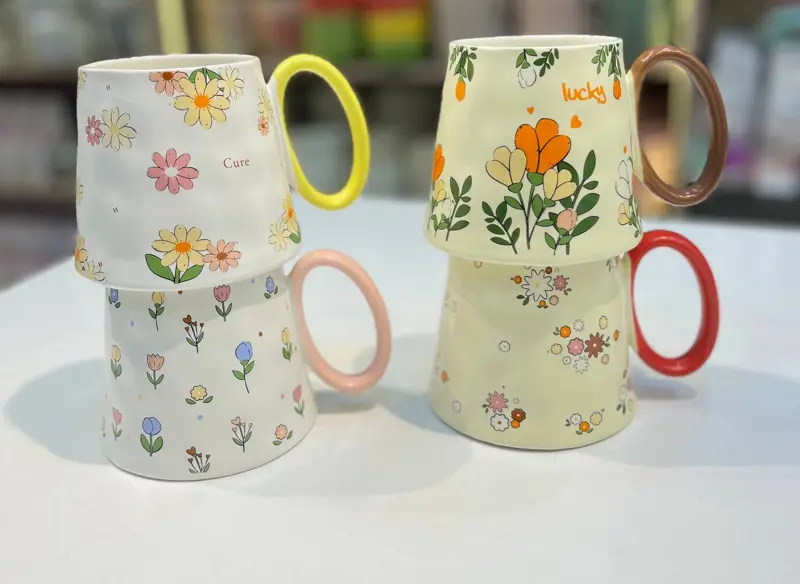 استمتعي بأناقة الحلاويات مع مج بورسلين فلوري بيد بيضاوي ❤️🔥🔥، مصمم بزخارف زهور راقية وشكل بيضاوي فريد يضيف لمسة فاخرة. مصنوع من بورسلين عالي الجودة، مثالي لتقديم القهوة أو الشاي بأسلوب ساحر، مع متانة تضمن استخدامًا يوميًا متميزًا.