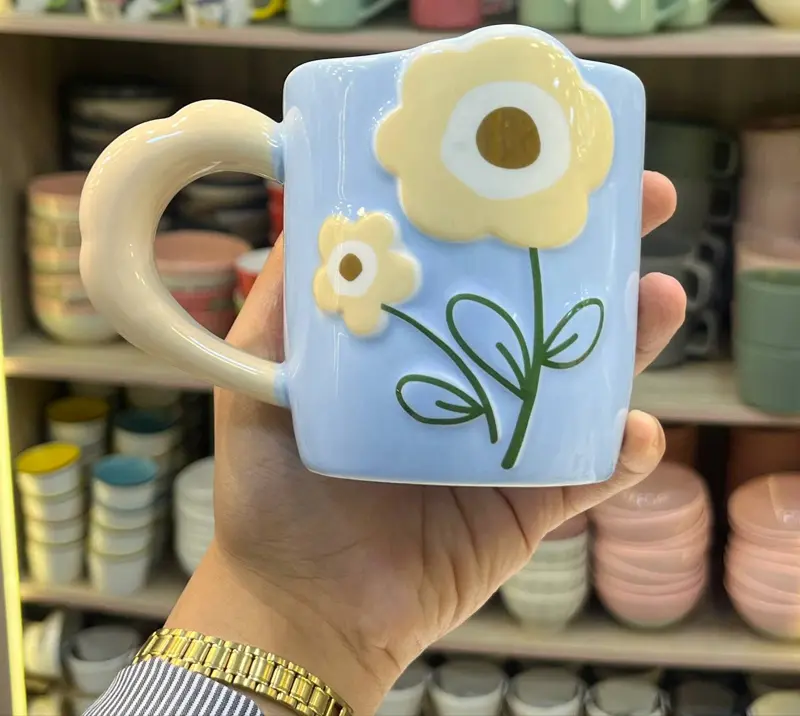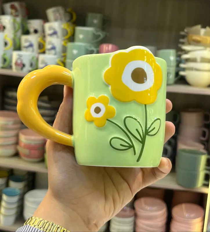 رائج مج بورسلين فرداني بتصميم وردة بارزة 3D أنيقة