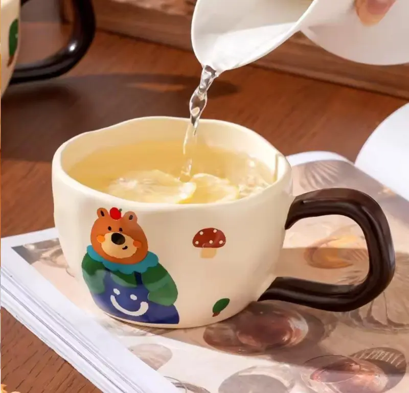 هذا المج هو قطعة مميزة للغاية، يجمع بين التصميم الجذاب والوظيفة العملية، مما يجعله إضافة رائعة لمجموعة أوانيك. مصمم بشكل اسطواني، ويتميز بوجود شخصية دب لطيفة في المنتصف، مما يضفي لمسة من البهجة على روتينك اليومي.