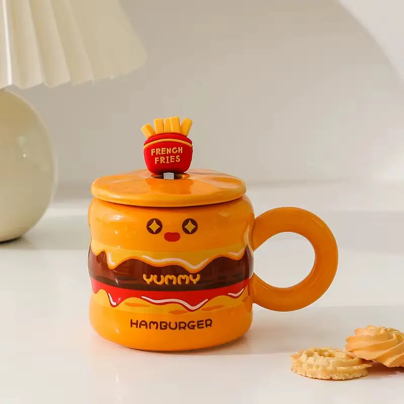 قطعة فنية تحاكي شغفك بالطعام اللذيذ. استمتعي بتجربة شرب فريدة مع مج البورسلين المصمم على شكل شطيرة هامبرغر شهية. صُنع ه…
