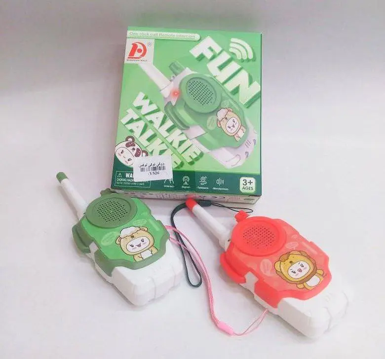 تحتوي المجموعة على جهازين لاسلكيين (walkie-talkies) بألوان زاهية وتصميم جذاب برسوم حيوانات لطيفة. الأجهزة مصممة بشكل يسهل على أيدي الأطفال حملها، وتتميز بوضوح الصوت. القطع مصنوعة من بلاستيك آمن ومتين، مما يجعلها مثالية للاستخدام اليومي.