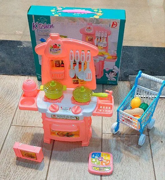 تتميز اللعبة بتصميمها العملي والقابل للتحويل، مما يوفر مساحة تخزين ويزيد من خيارات اللعب. تأتي مع مجموعة متنوعة من الأواني، وأدوات المطبخ، وعلب الطعام البلاستيكية. جميع القطع مصنوعة من مواد آمنة وغير سامة، ومناسبة لسن الأطفال.