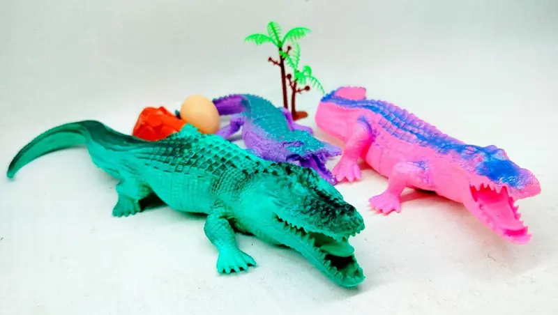 صُنعت التماسيح من خامة سيليكون آمنة ومرنة، مما يمنحها ملمساً ناعماً ومطاطياً. وتأتي المجموعة مع 3 تماسيح بألوان مختلفة، بالإضافة إلى أشجار وجدار يتيح لطفلك تصميم بيئة لعب خاصة به وإنشاء "مزرعة تماسيح" أو غابة صغيرة.