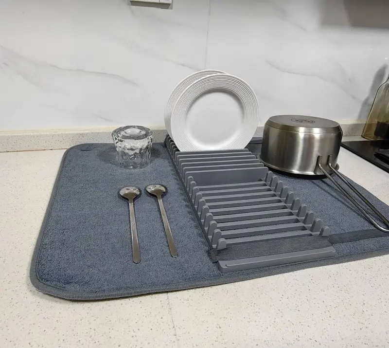 • تُستخدم كأرضية تجفيف مؤقتة، حيث يمكن فردها على أي سطح مسطح في المطبخ.