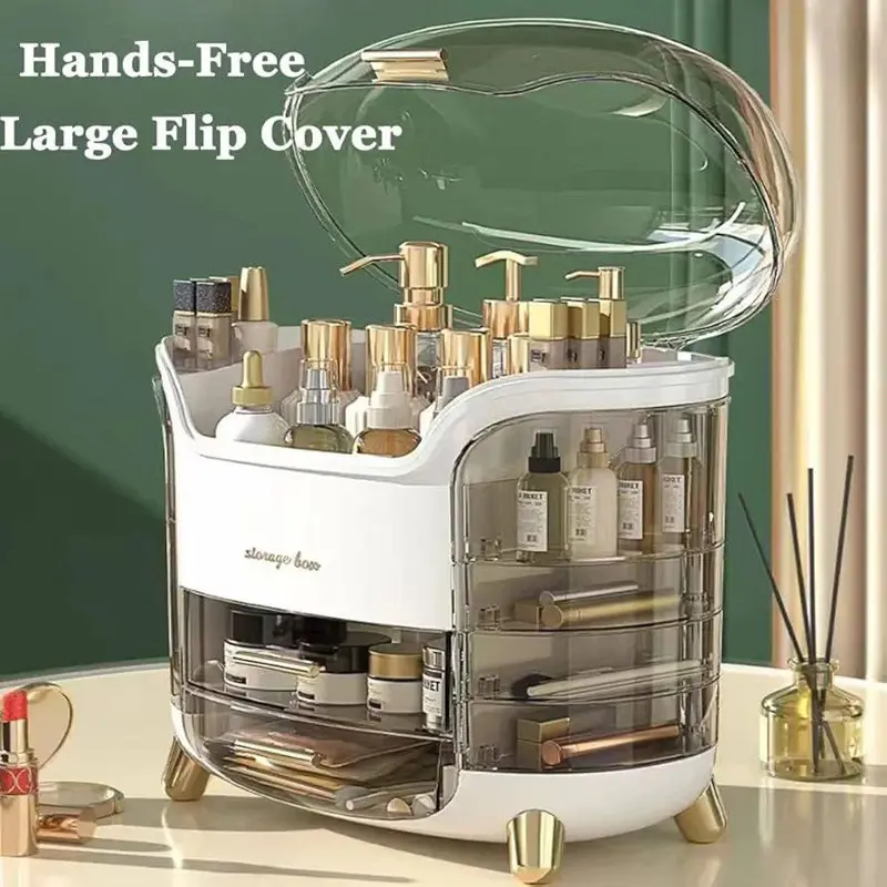 أناقة فائقة وتعدد لا مثيل له في الاستخدامات. نقدم لكِ هذا المنظم الفاخر، وهو قطعة أنيقة ومتعددة الاستخدامات، تم تصميمها بعناية لتكون إضافة مميزة لمساحة التجميل الخاصة بكِ. يتميز المنظم بتصميمه العصري ومقاسه الجامبو الذي يتيح لكِ تنظيم كل مستحضرات التجميل الخاصة بكِ في مكان واحد. يتكون من أجزاء متعددة لتخزين مختلف الأدوات، مع غطاء علوي شفاف لحمايتها من الأتربة. إنه الخيار الأمثل لتنظيم أدوات المكياج والعناية بالبشرة، حيث يضفي تصميمه لمسة من الشياكة والجمال. المنظم متوفر باللون الأبيض، وهو منتج مستورد.