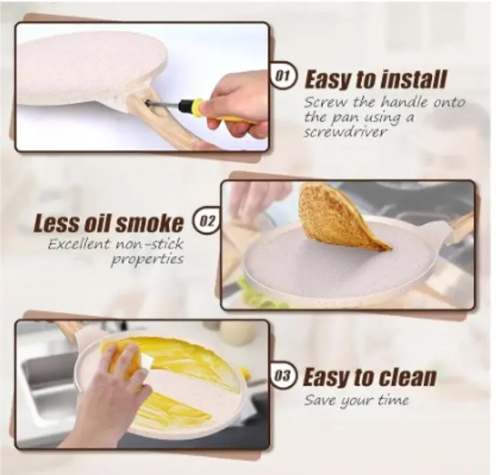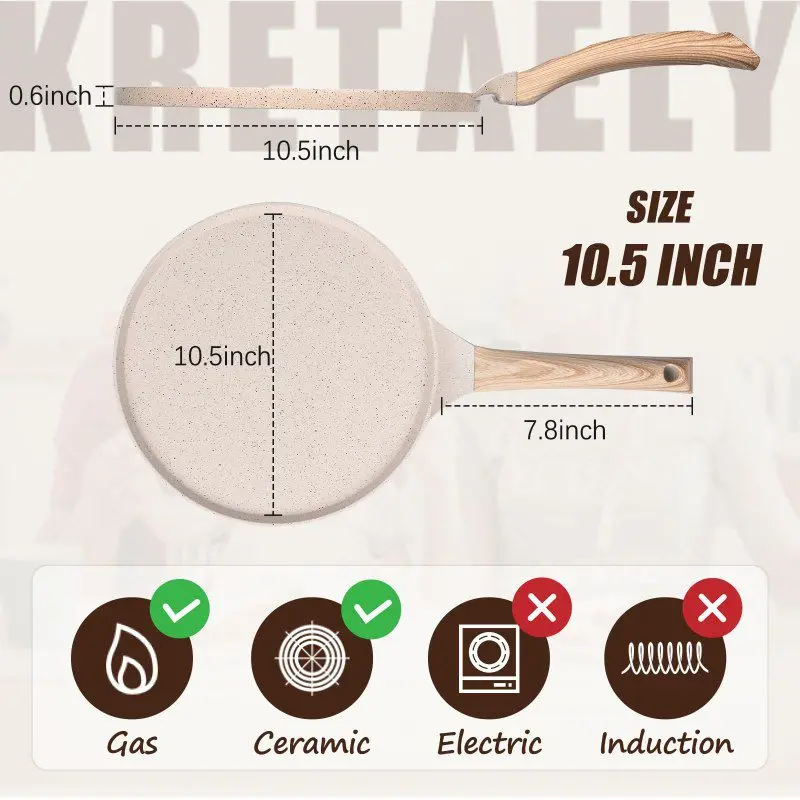 • متعددة الاستخدامات: مثالية لتحضير الكريب الرقيق، البان كيك، الأومليت، وحتى البيتزا الصغيرة بفضل سطحها المسطح.