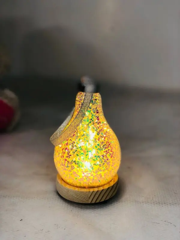 أضف لمسة من السحر إلى مساحتك الخاصة مع مصباح الجليتر المتوهّج بقاعدة خشبية وإضاءة متعددة الألوان. هذه اللمبة ليست مجرد ق…