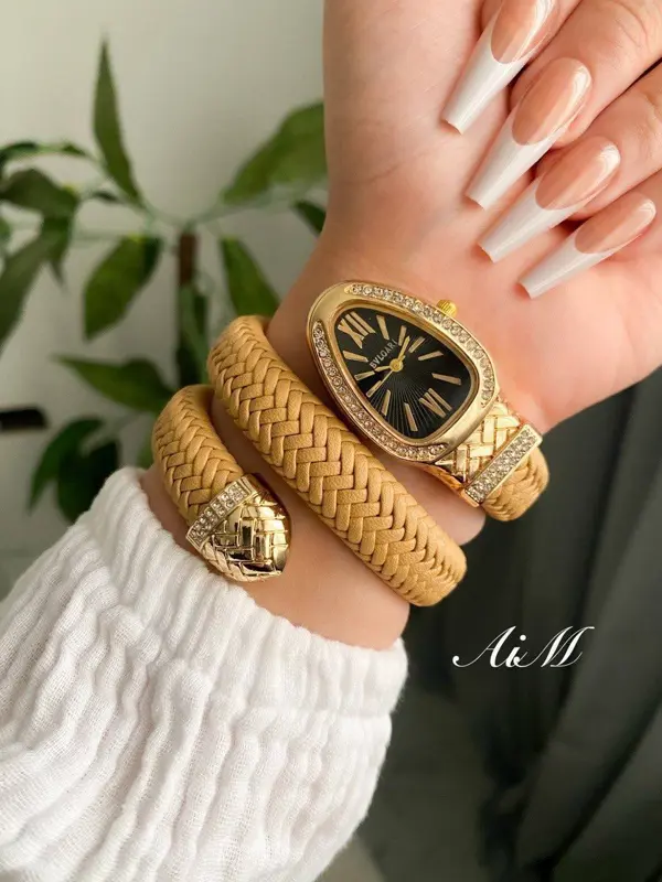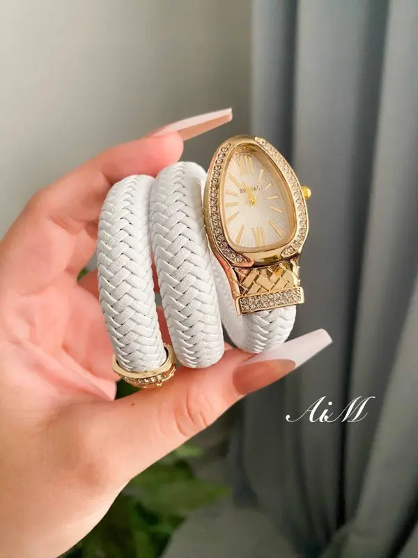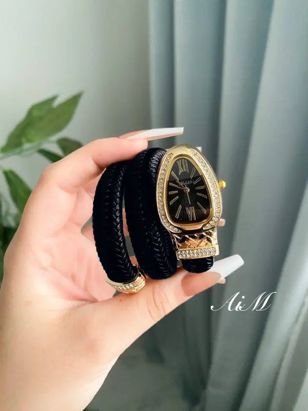 احصلي على إطلالة عصرية ومميزة مع ساعة بولغاري سيربنتي الفاخرة ذات التصميم الملتف حريمي. تتميز هذه الساعة بتصميمها الأنيق على شكل أفعى تلتف حول المعصم، مما يجعلها قطعة إكسسوار فريدة من نوعها.