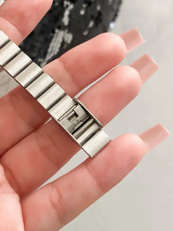 تتميز الساعة بخاماتها عالية الجودة، حيث أنها ضد الصدأ ومقاومة للماء، مما يجعلها عملية ومتينة ومناسبة للاستخدام اليومي دون القلق من التلف.
