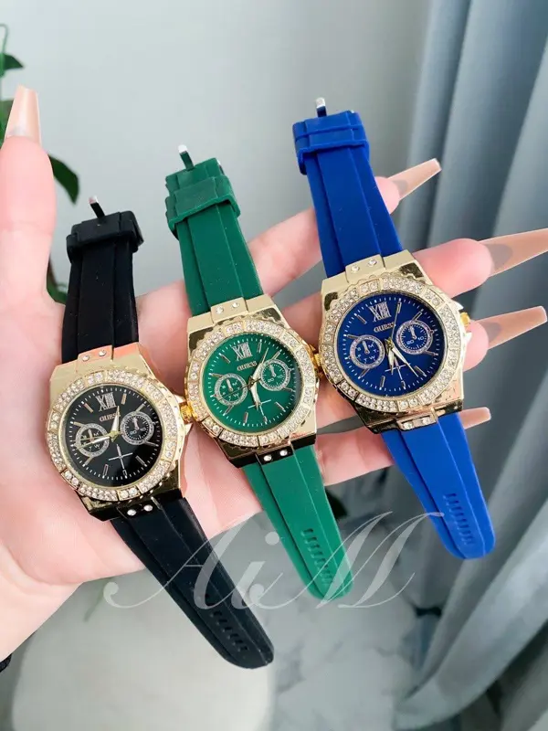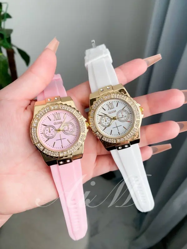 تتميز الساعة بتصميمها الأنيق المستوحى من ماركة جيس، مع حزام عريض مصنوع من مادة مطاطية عالية الجودة تضمن لكِ مظهراً عصرياً ومريحاً. الساعة ضد الصدأ ومقاومة للماء، مما يجعلها عملية ومناسبة للاستخدام اليومي دون القلق من التلف.