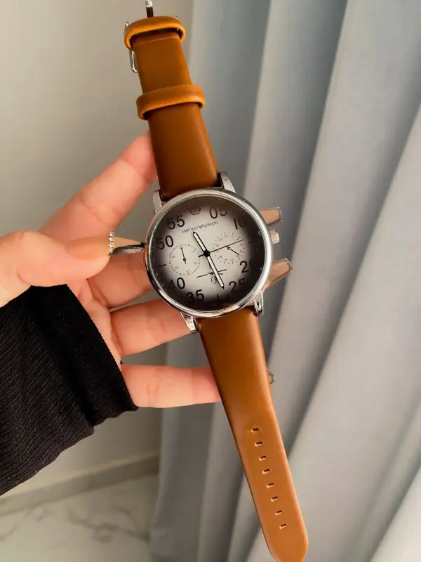 أضف لمسة من الأناقة الكلاسيكية إلى إطلالتك مع ساعة إمبريو أرماني أوريجينال جلد رجالي. تتميز هذه الساعة بتصميمها الأنيق المصنوع من خامة عالية، مع ميناء أبيض أنيق وحزام جلدي مريح باللون البني.