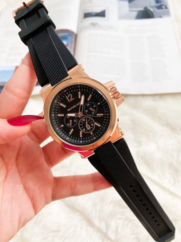 اكتشف الأناقة العصرية مع ساعة مايكل كورس رابر رجالي، قطعة مثالية لإطلالة شيك وعملية. تتميز هذه الساعة بتصميمها المميز المصنوع من خامة عالية الجودة، مع حزام رابر مريح باللون الأسود.