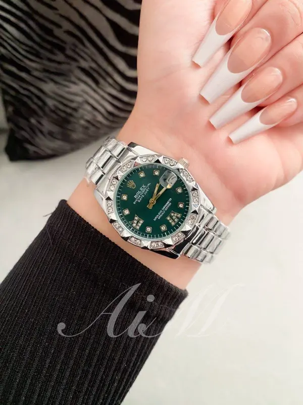 تتميز الساعة بتصميمها الأنيق المستوحى من ماركة روليكس، مع خامة عالية الجودة تضمن لكِ مظهراً فاخراً. الساعة ضد الصدأ ومقاومة للماء، مما يجعلها عملية ومناسبة للاستخدام اليومي دون القلق من التلف.