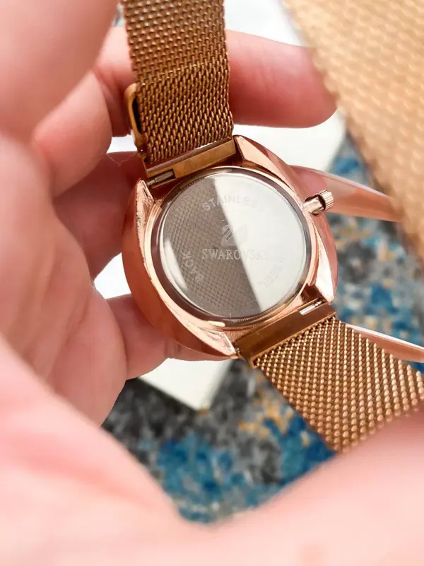 تتميز الساعة بتصميمها الراقي وبخامة عالية الجودة تضمن لكِ مظهراً جذاباً. يسهل الحزام المغناطيسي من ارتدائها وتعديلها على معصمكِ بكل راحة. الساعة ضد الصدأ ومقاومة للماء، مما يجعلها عملية ومناسبة للاستخدام اليومي دون القلق من التلف.