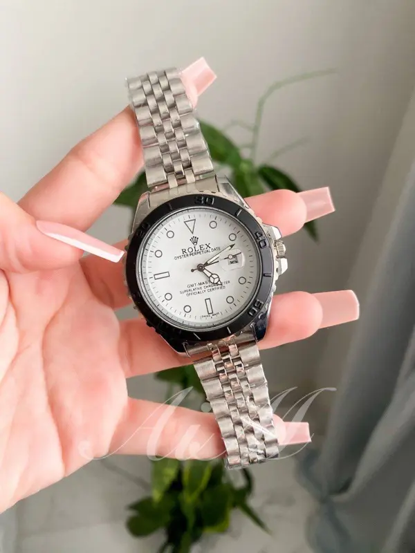 أضف لمسة من الفخامة إلى إطلالتك مع ساعة رولكس إصدار ماستر ستايل رجالي. تتميز هذه الساعة بتصميمها الأيقوني الأنيق، مع إطار دائري وقرص أسود يمنحها مظهراً كلاسيكياً لا مثيل له.
