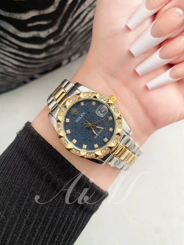 تتميز الساعة بتصميمها الأنيق المستوحى من ماركة روليكس، مع خامة عالية الجودة تضمن لكِ مظهراً فاخراً. الساعة ضد الصدأ ومقاومة للماء، مما يجعلها عملية ومناسبة للاستخدام اليومي دون القلق من التلف.