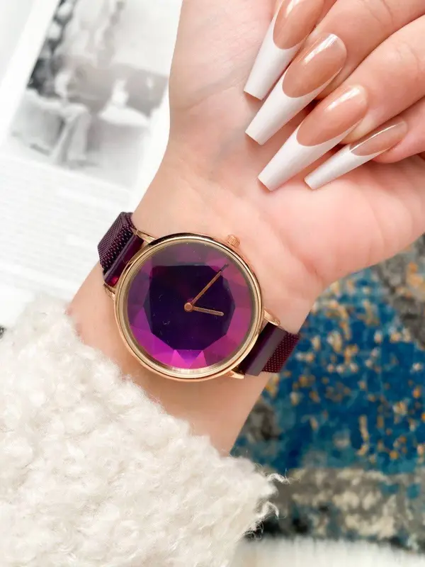 استكملي إطلالتكِ بلمسة من السحر مع هذه الساعة النسائية الفريدة! بفضل مينائها اللامع الذي يشبه سماء الليل المرصعة بالنجوم، تُعد هذه القطعة إكسسواراً مميزاً يضيف لمسة من الجاذبية إلى مظهركِ، وتناسب جميع الإطلالات.