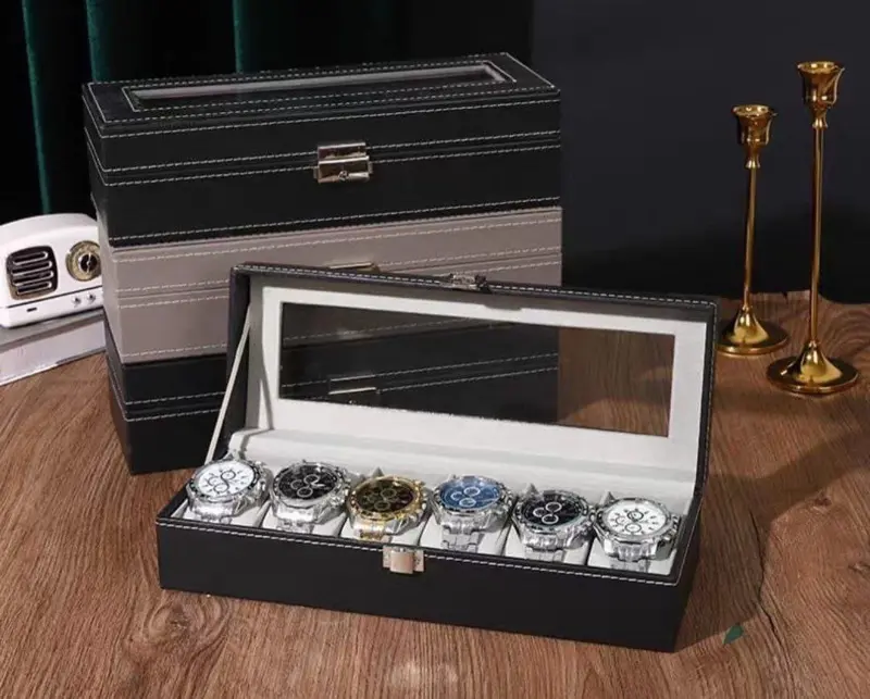 احمِ ساعاتك ومجوهراتك المفضلة من الخدوش والغبار مع هذا الصندوق المنظم الأنيق. صُمم الصندوق من جلد عالي الجودة، مما يمنحه مظهرًا فاخرًا ويضمن متانته. يحتوي الصندوق على أقسام مخصصة لترتيب الساعات، مما يحافظ على كل قطعة في مكانها ويمنع تشابكها. بالإضافة إلى استخدامه لتخزين الساعات، يمكن استغلال بعض الأقسام لتنظيم المجوهرات الأخرى مثل الأساور أو الخواتم. يتميز الصندوق بغطاء شفاف يسمح لكِ برؤية محتوياته دون الحاجة إلى فتحه، مما يسهل عليكِ اختيار ما ترتدينه.