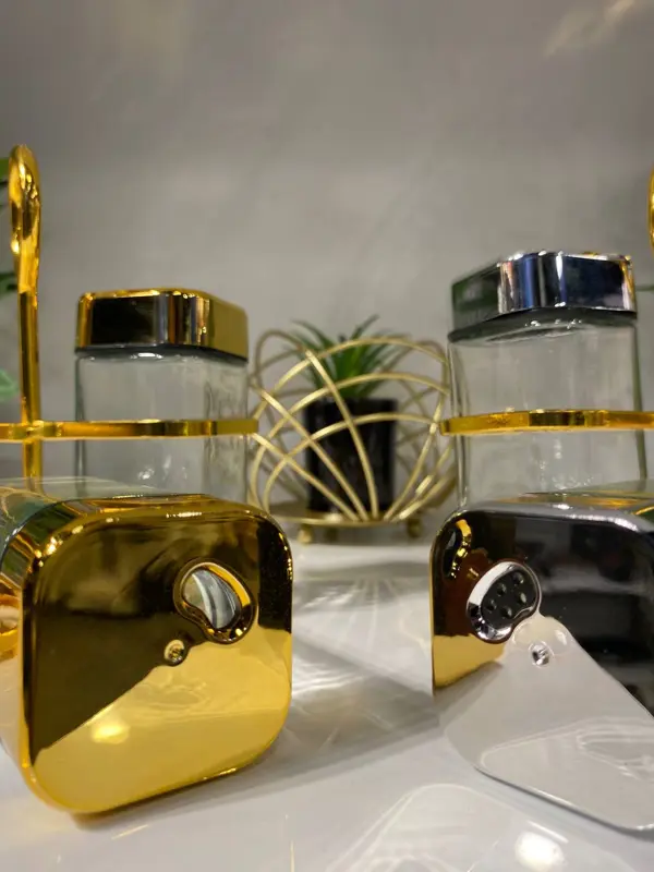 • خامة زجاجية بلمسة فاخرة: مصنوع من الزجاج بتفاصيل أنيقة تجمع بين اللونين الذهبي والفضي، مما يمنحه مظهراً ملكياً وشيكاً.