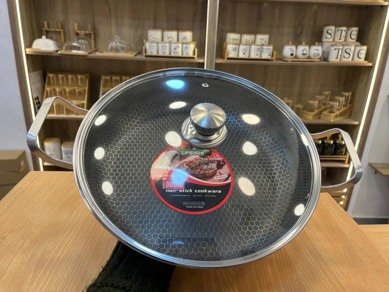 المقلاة مزودة بغطاء من البيركس يسمح بمراقبة الطعام أثناء الطهي، كما أنها تحتوي على موزع حراري يضمن توزيع الحرارة بشكل متساوٍ. تصميمها بيدين مزدوجتين من الستانلس ستيل يمنحها مظهرًا عصريًا ويوفر سهولة في الحمل.