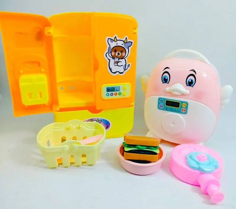 رائج طقم مطبخ بطوط، لعبة طهي متكاملة مع ثلاجة وميكروويف