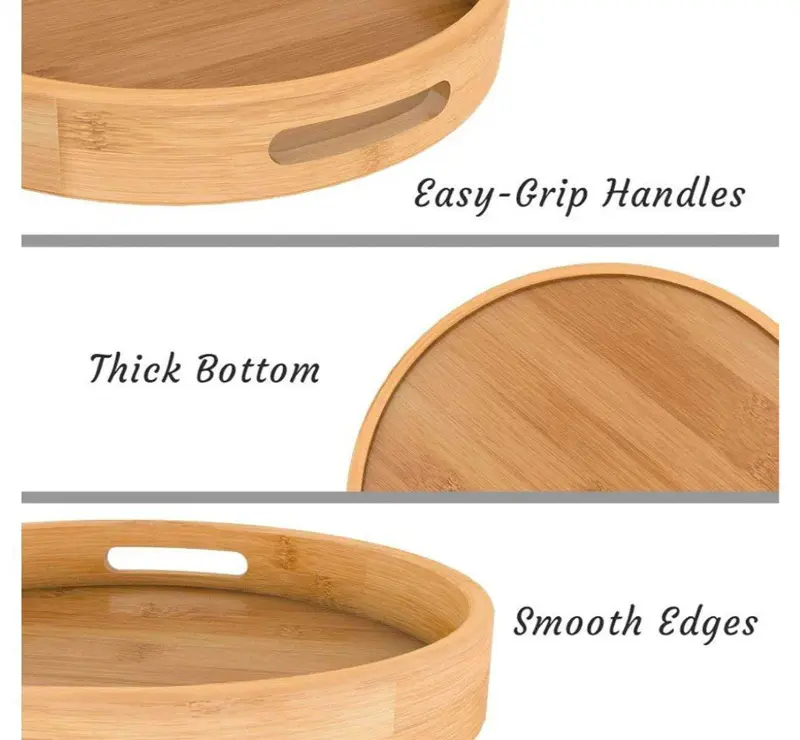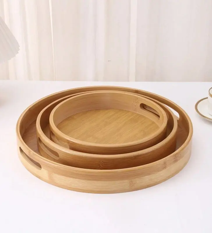 رائج طقم صواني التقديم "بامبو كلاسيك" الخشبي 3 قطع بتصميم أنيق