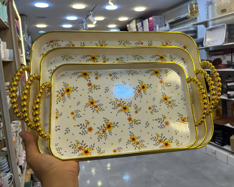• طقم 3 قطع متعدد الأحجام: يتكون من ثلاث صواني مستطيلة بأحجام مختلفة، مما يلبي جميع احتياجات التقديم من الوجبات إلى المشروبات والحلويات.