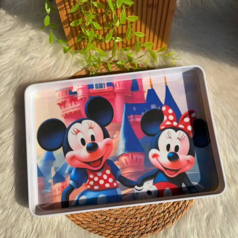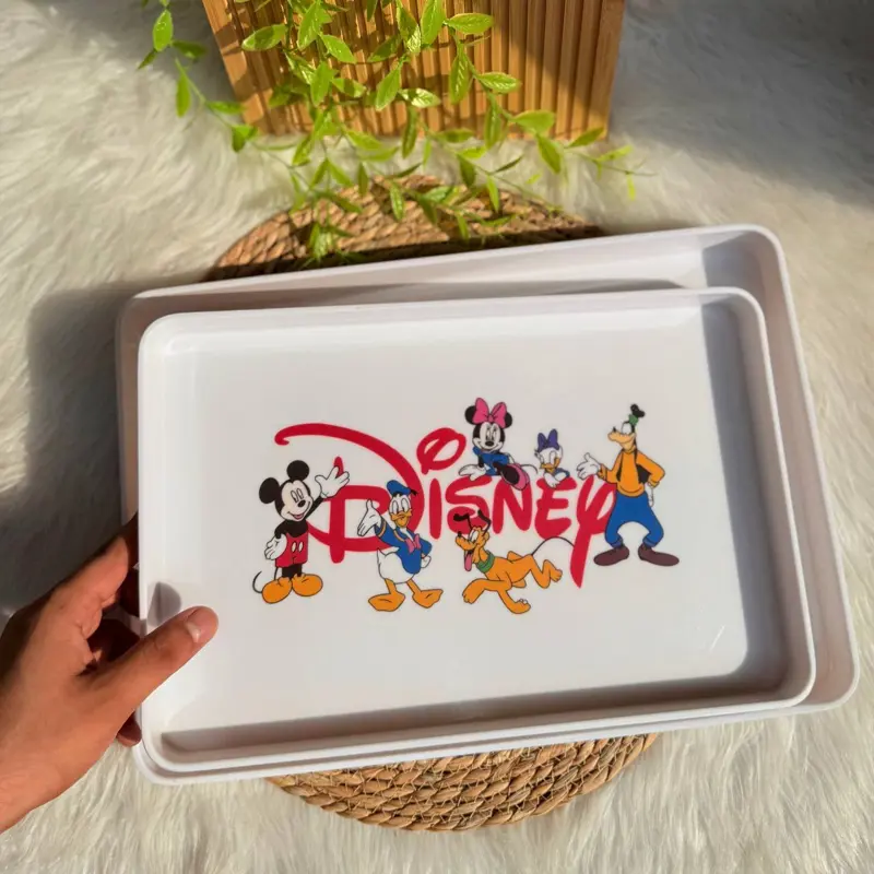 أناقة عصرية وتعدد لا مثيل له في الاستخدامات. نقدم لكِ هذا الطقم الأنيق والعملي، وهو قطعة مميزة تم تصميمها بعناية لتقديم الطعام والمشروبات بأسلوب مبهج وراقي. يتميز الطقم بتصميمه المستطيل المصنوع من الميلامين النقي والأكريليك، والمزين بشخصيات ديزني المحبوبة التي تضفي لمسة من المرح والجمال. يمكن استخدام الصواني لتقديم الوجبات الخفيفة، الحلويات، أو المشروبات للضيوف والعائلة، وهي مثالية للاستخدام في المناسبات الخاصة، خصوصًا مع الأطفال، أو حتى للاستخدام اليومي. الطقم مكون من 3 قطع بمقاسات مختلفة: 40*28 سم، 35*23 سم، و30*20 سم، مما يمنحك المرونة في الاستخدام.