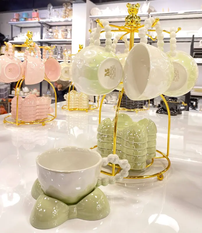 اجعلي لحظات تناول الشاي استثنائية مع هذا الطقم الفاخر الذي يخطف الأنظار! طقم البورسلين اللاستر يضيف لمسة من البريق والأناقة العصرية لمناسباتك.