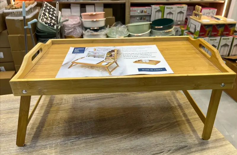 استمتع بوجبات الإفطار المريحة في السرير أو على الأريكة مع ترابيزة الإفطار المستوردة هذه، المصممة على طراز "ايكيا". تتميز الترابيزة بتصميمها الأنيق والمصنوع من الخشب، مما يمنحها مظهرًا طبيعيًا ودافئًا.