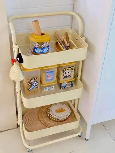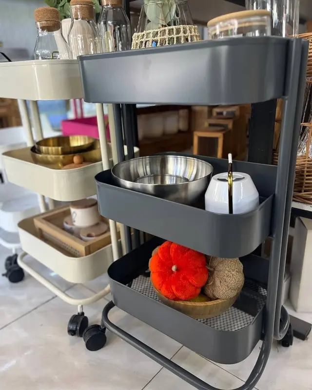• استخدمي الأرفف الثلاثة لتنظيم أدوات المطبخ أو مستحضرات التجميل.